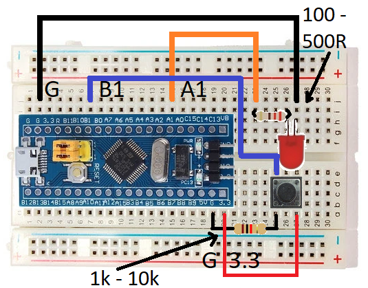 /* USER CODE BEGIN PV */ uint32_t previousMillis = 0; uint32_t currentMillis = 0; uint32_t counterOutside = 0; //For testing only uint32_t counterInside = 0; //For testing only /* USER CODE END PV */ /* USER CODE BEGIN 4 */ void HAL_GPIO_EXTI_Callback(uint16_t GPIO_Pin) { counterOutside++; //For testing only currentMillis = HAL_GetTick(); if (GPIO_Pin == GPIO_PIN_1 && (currentMillis - previousMillis > 10)) { counterInside++; //For testing only HAL_GPIO_TogglePin(GPIOA, GPIO_PIN_1); previousMillis = currentMillis; } } /* USER CODE END 4 */