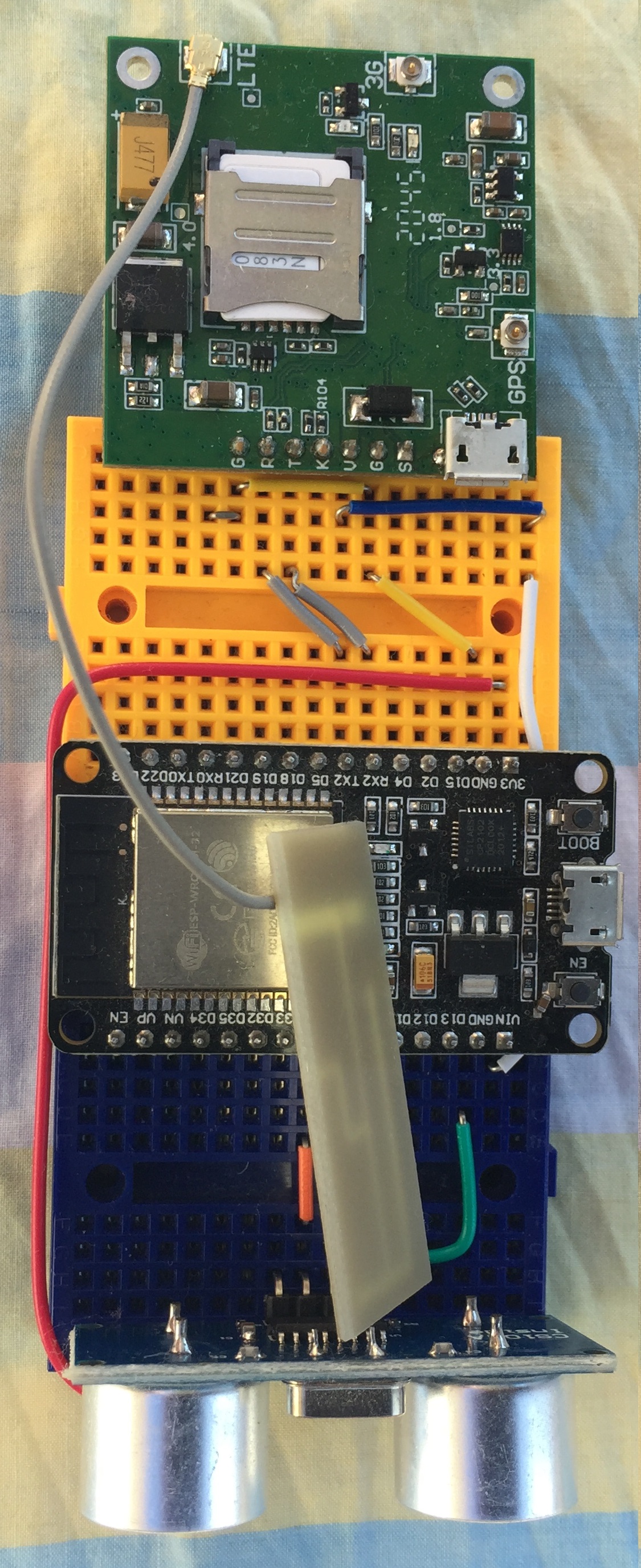 // Arduino file start here #define TINY_GSM_MODEM_SIM7600 #define SerialMon Serial HardwareSerial SerialAT(1); #if !defined(TINY_GSM_RX_BUFFER) #define TINY_GSM_RX_BUFFER 650 #endif #define TINY_GSM_YIELD() { delay(2); } const char apn[] = "telstra.internet"; // Change this to your Provider details const char gprsUser[] = ""; const char gprsPass[] = ""; const char server[] = "nizarmohideen.atwebpages.com"; // Change this to your selection const char resource[] = "/insert.php"; const int port = 80; unsigned long timeout; const int trigPin = 25; const int echoPin = 26; long duration; int distance; #include <TinyGsmClient.h> TinyGsm modem(SerialAT); TinyGsmClient client(modem); void setup() { pinMode(trigPin, OUTPUT); pinMode(echoPin, INPUT); SerialMon.begin(115200); delay(10); SerialMon.println("Wait..."); SerialAT.begin(115200,SERIAL_8N1,16,17, false); delay(600); SerialMon.println("Initializing modem..."); } void loop() { digitalWrite(trigPin, LOW); delayMicroseconds(2); digitalWrite(trigPin, HIGH); delayMicroseconds(10); digitalWrite(trigPin, LOW); duration = pulseIn(echoPin, HIGH); distance = duration * 0.034 / 2; modem.restart(); SerialMon.print("Waiting for network..."); if (!modem.waitForNetwork()) { SerialMon.println(" fail"); delay(1000); return; } SerialMon.println(" success"); if (modem.isNetworkConnected()) { SerialMon.println("Network connected"); } SerialMon.print(F("Connecting to ")); SerialMon.print(apn); if (!modem.gprsConnect(apn, gprsUser, gprsPass)) { SerialMon.println(" fail"); delay(1000); return; } SerialMon.println(" success"); if (modem.isGprsConnected()) { SerialMon.println("GPRS connected"); } if (!client.connect(server, port)) { SerialMon.println(" fail"); } SerialMon.println("Performing HTTP POST request..."); String httpRequestData = "key=a@4K%3&distance="+ String(distance) +""; client.print(String("POST ") + resource + " HTTP/1.1\r\n"); client.print(String("Host: ") + server + "\r\n"); client.println("Connection: close"); client.println("Content-Type: application/x-www-form-urlencoded"); client.print("Content-Length: "); client.println(httpRequestData.length()); client.println(); client.println(httpRequestData); timeout = millis(); while (client.connected() && millis() - timeout < 10000L) { while (client.available()) { char c = client.read(); SerialMon.print(c); timeout = millis(); } } SerialMon.println(); client.stop(); SerialMon.println(F("Server disconnected")); modem.gprsDisconnect(); SerialMon.println(F("GPRS disconnected")); } // End of Arduino file